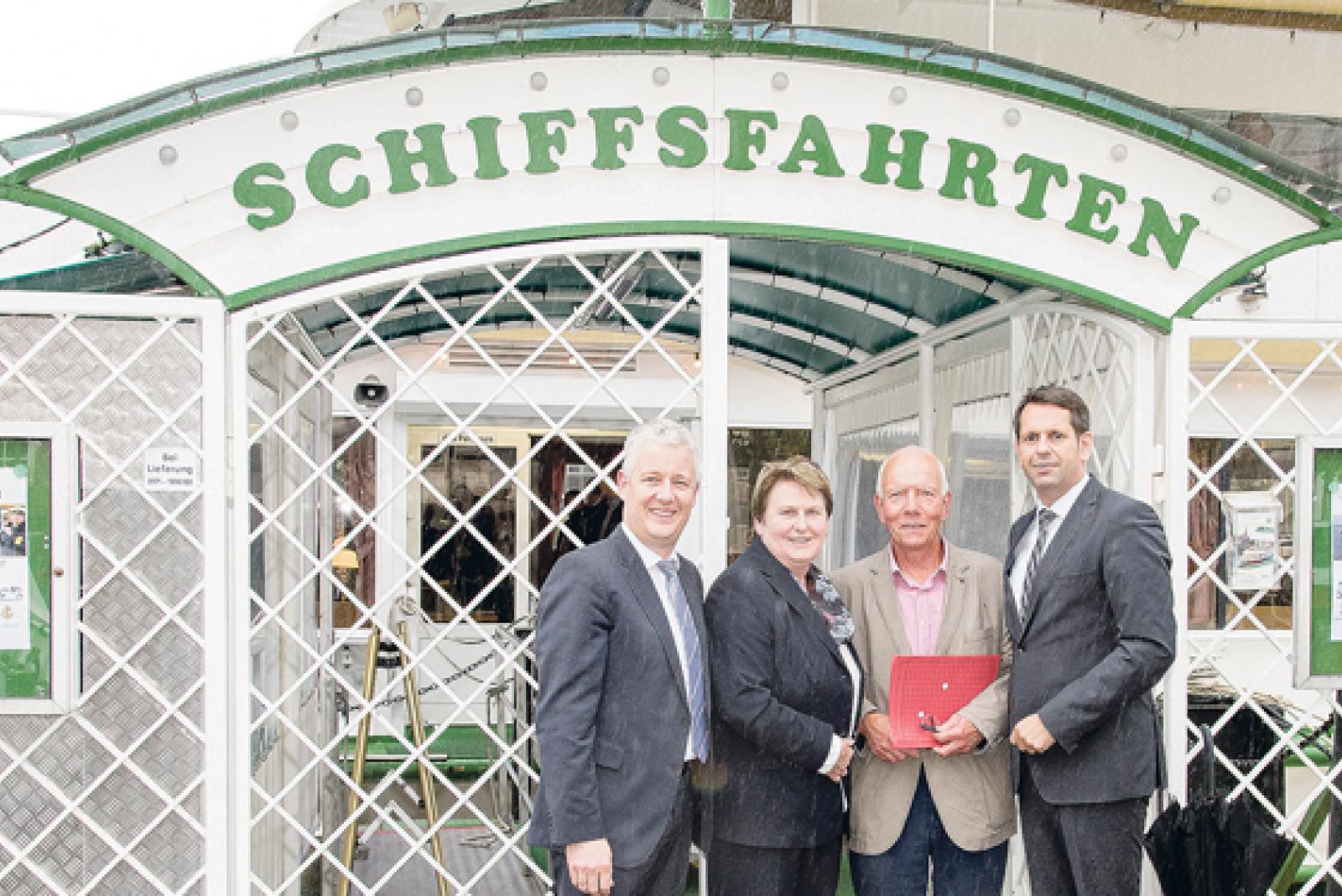 Trafen sich zum Gespräch über die Leeraner Hafenwirtschaft: (von links) der SPD-Europaabgeordnete Matthias Groote, die SPD-Landtagsabgeordnete Johanne Modder, der Vorsitzende der Hafenwirtschaftsvereinigung Werner Schröter und Wirtschaftsminister Olaf Lies (SPD). © Foto: privat