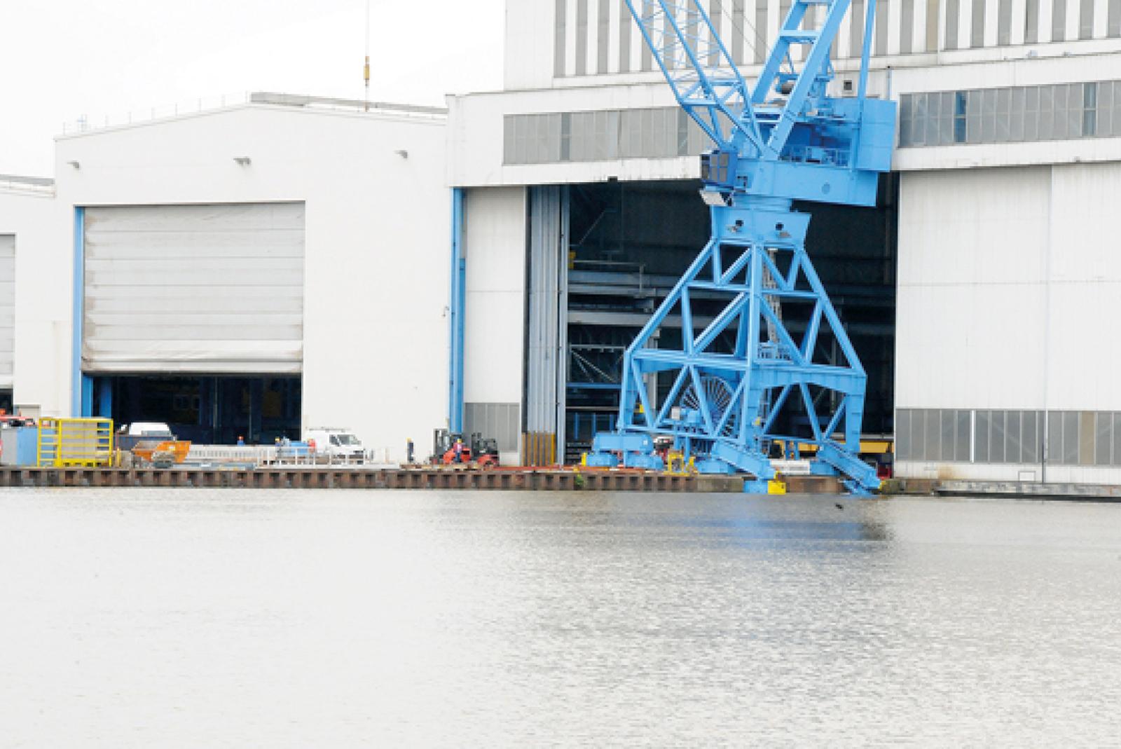 Montagekran auf Meyer Werft in Hafenbecken entgleist - Keine Verletzen