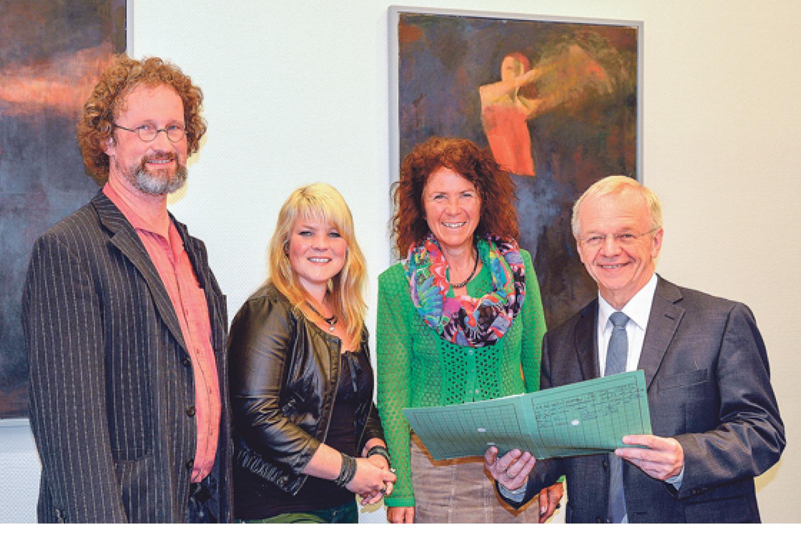 Freuen sich über die Förderung von 214.000 Euro: Joachim Spekker, Jana Bunger-Pfeiffer, Monika Fricke und Landrat Bernhard Bramlage (von links). © Foto: Landkreis Leer