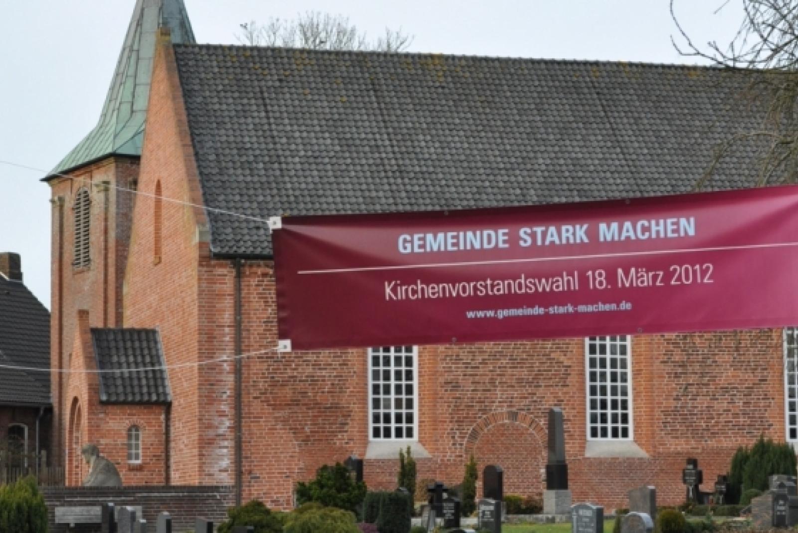 Zum Urnengang am kommenden Wochenende rufen auch die Kirchengemeinden des Rheiderlandes, wie hier vor der Matthäi-Kirche Bingum. © Foto: Wolters