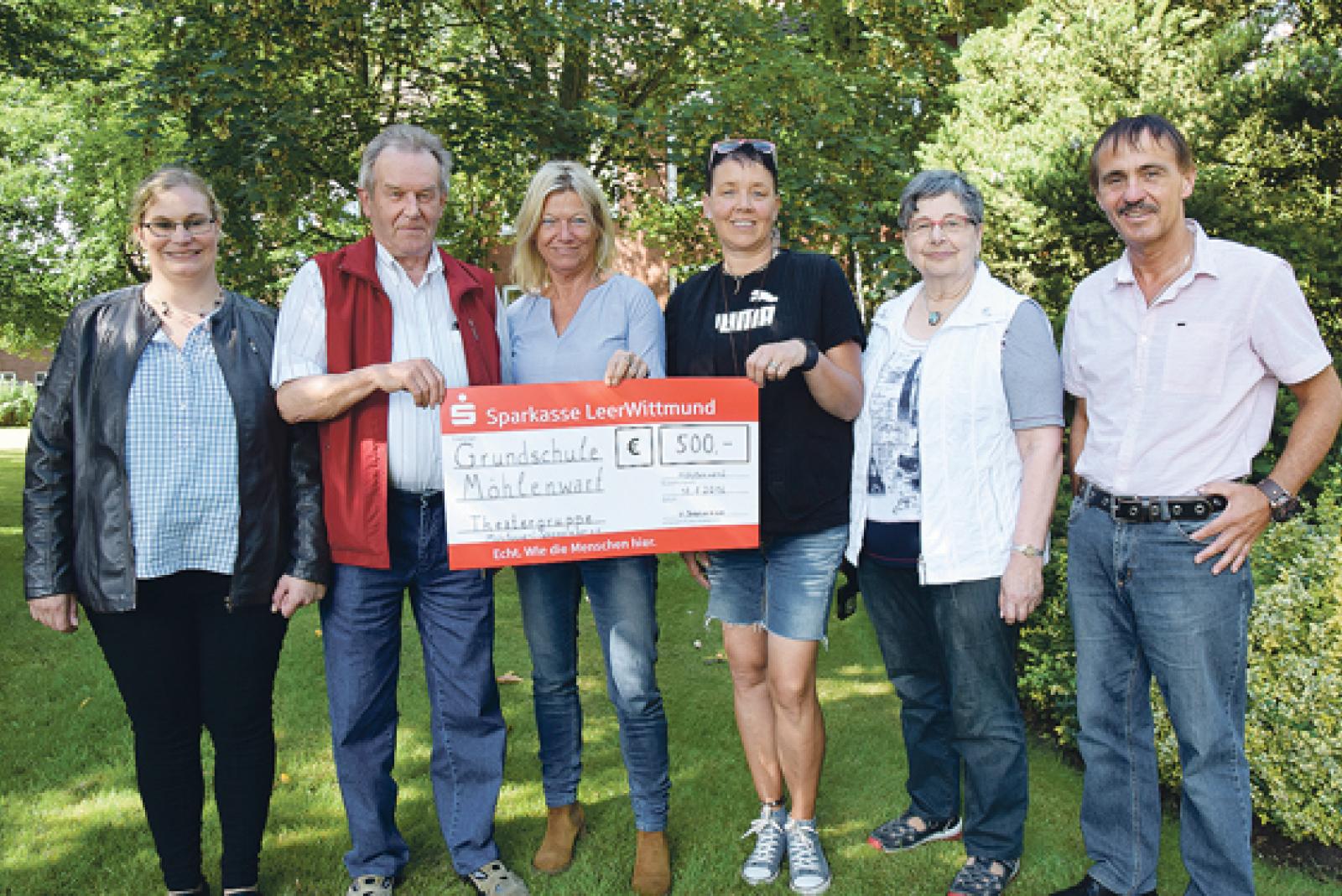 Schon 21 Jahre lang übt die Theatergruppe immer von Januar bis März in der Aula der Grundschule Möhlenwarf. Aus diesem Grund überreichte der kleine Rheiderländer Verein nun 500 Euro an die Leitung der Einrichtung.