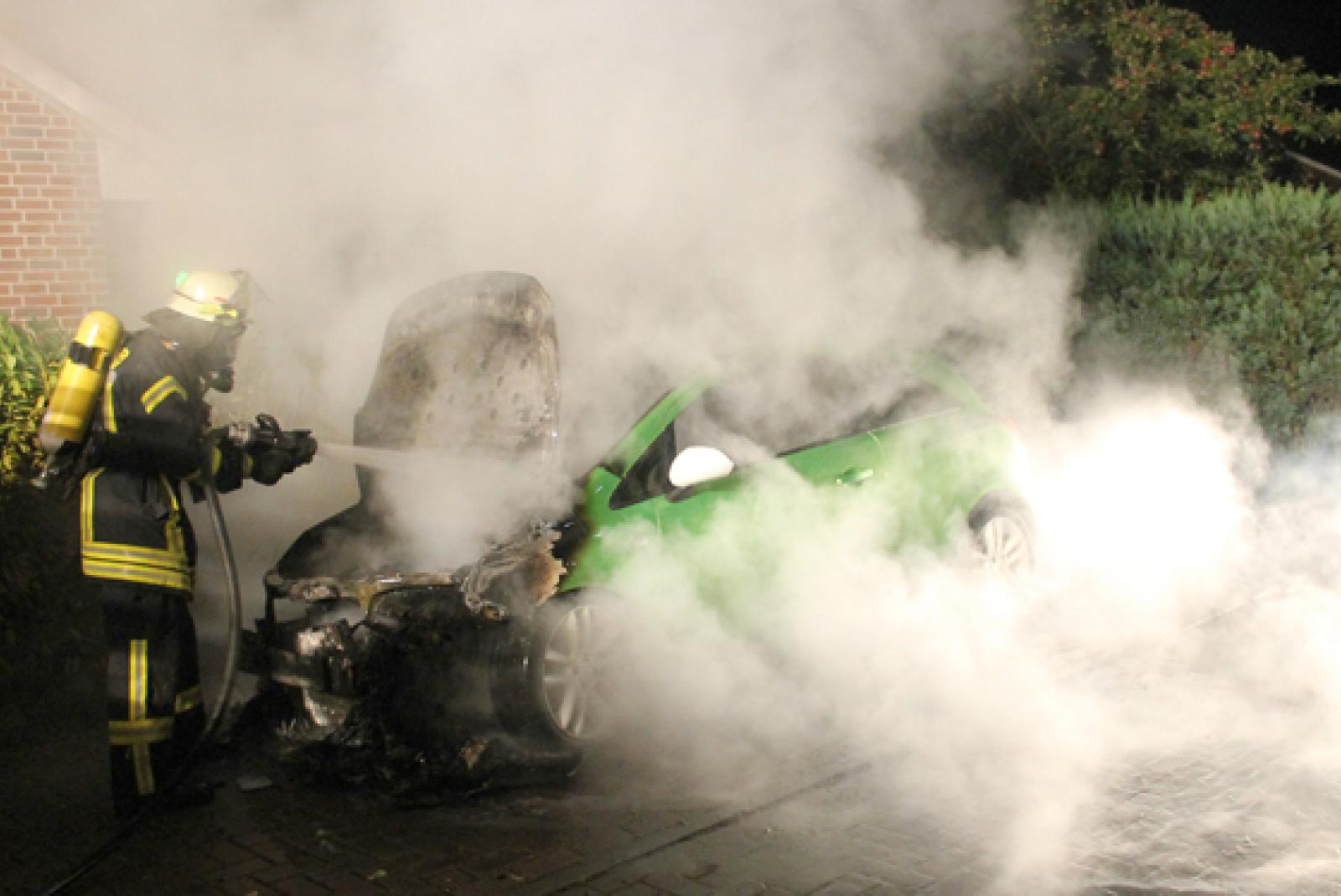 Ein Opel Corsa ist in der Nacht zu heute im Beerumer Weg in Weener aus bislang unbekannten Gründen in Brand geraten. Die Feuerwehr löschte das Auto und eine angrenzende Hecke, die ebenfalls in Mitleidenschaft gezogen wurde.