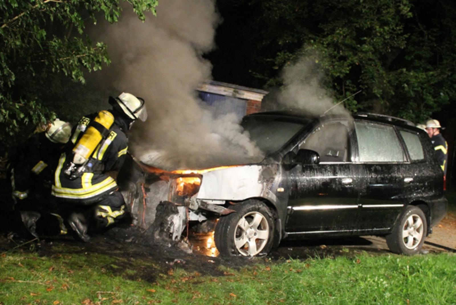 In der Friesenstraße an der Einmündung in die Störtebekerstraße in Weener geriet aus bislang ungeklärter Ursache ein dort abgestellter Wagen der Marke Kia Carens in Brand.