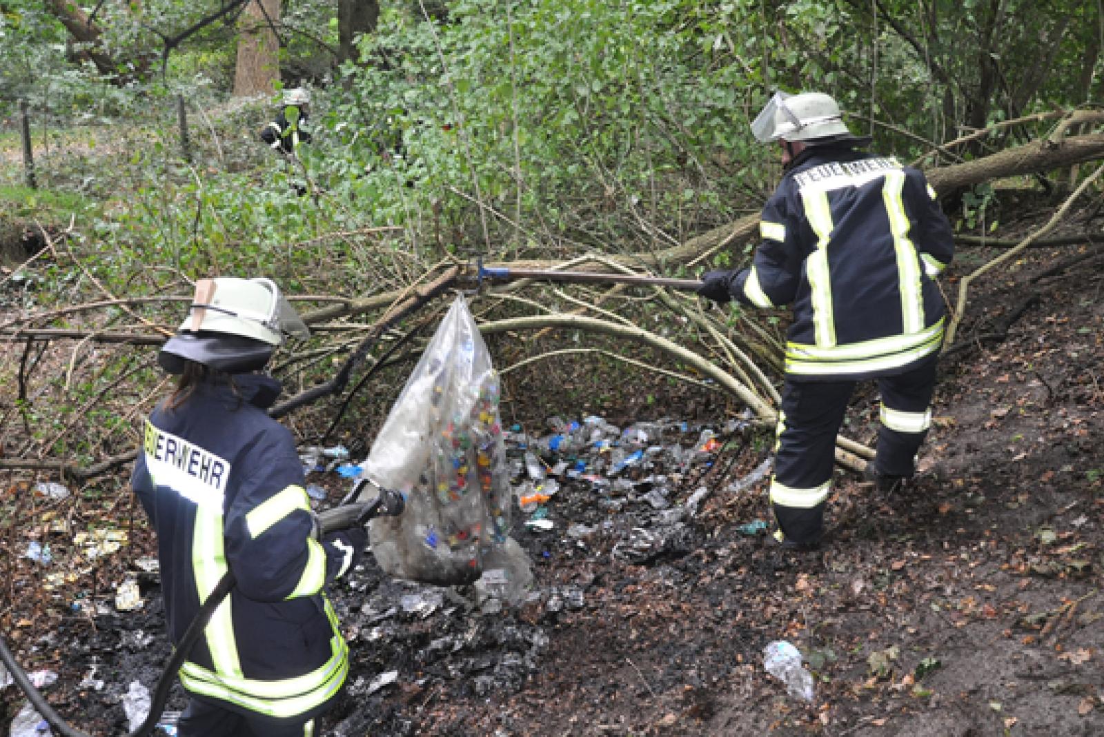 Sträucher und Unrat in Brand geraten