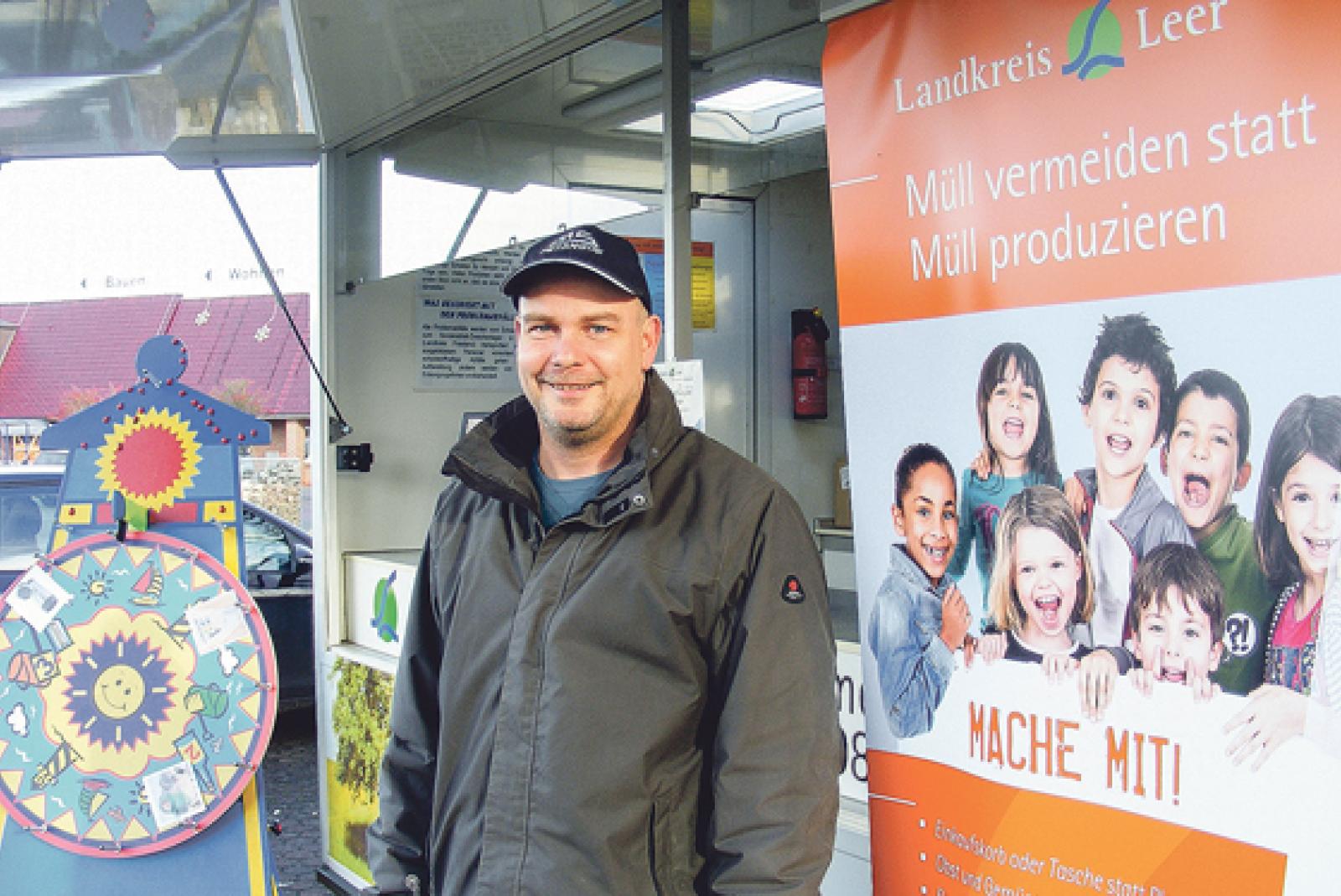 Arnd Oberfeuer vom Abfallwirtschaftsbetrieb des Landkreises Leer war mit einem Info-Mobil in Weener und gab Tipps zur Abfallvermeidung. Auf dem Parkplatz beim »Holz & Bau«-Markt drehte sich gestern das Glücksrad. Die Passanten, denen Fortuna hold war, gewannen kleine Preise ...