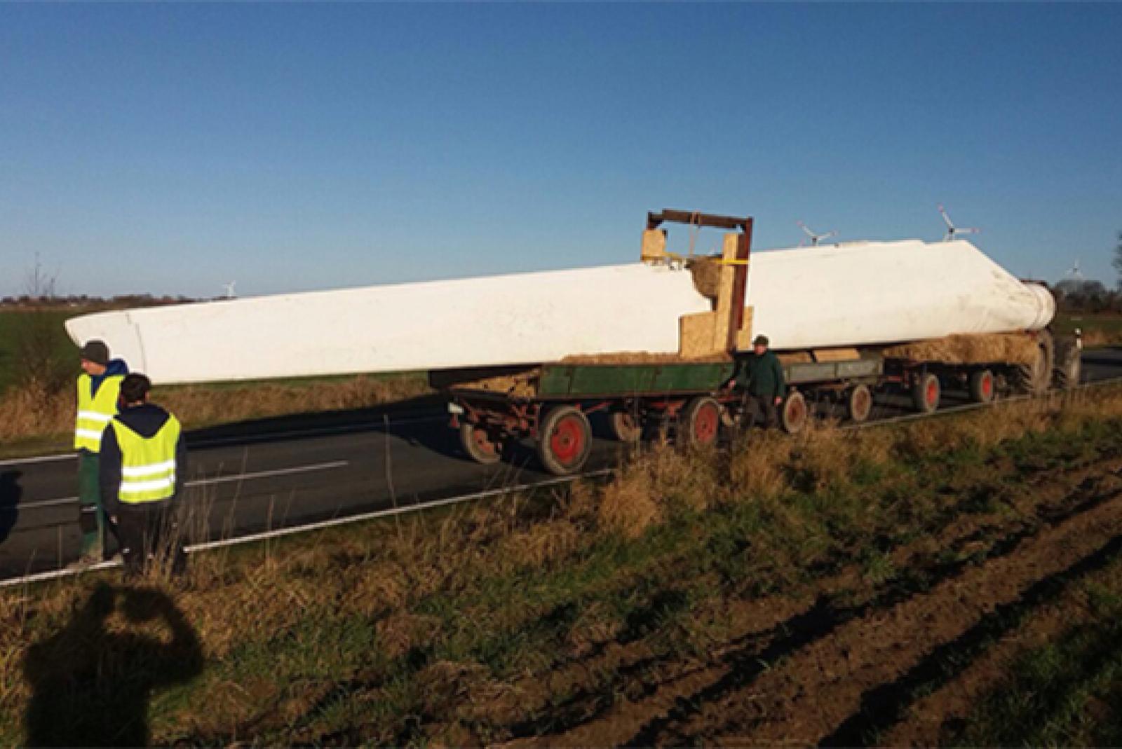 Ein »beflügeltes Unternehmen« hat die Polizei in Stedesdorf im Landkreis Wittmund am Sonntagmittag gestoppt: Ein Traktorfahrer hatte drei Flügel einer Windkraftanlage auf seinem Gespann geladen.