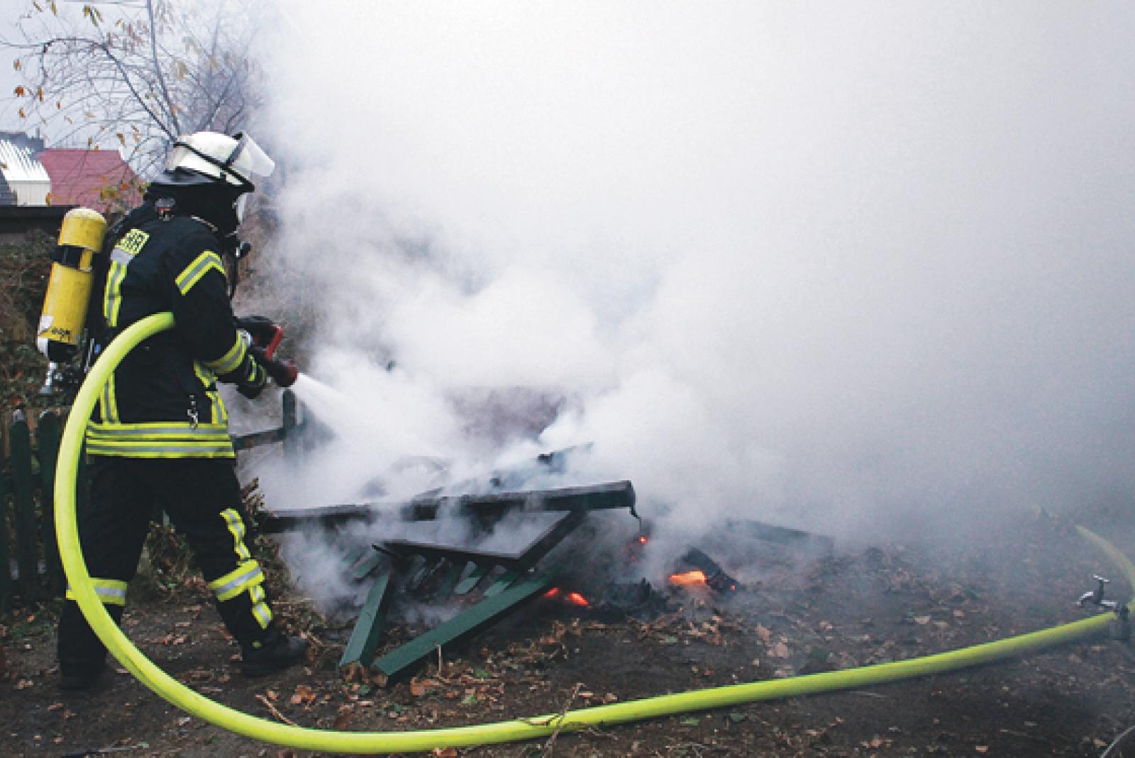Unter Atemschutz hatten die Einsatzkräfte das Feuer schnell unter Kontrolle. Die Vellager Straße war während der Löscharbeiten im Einsatzbereich gesperrt.