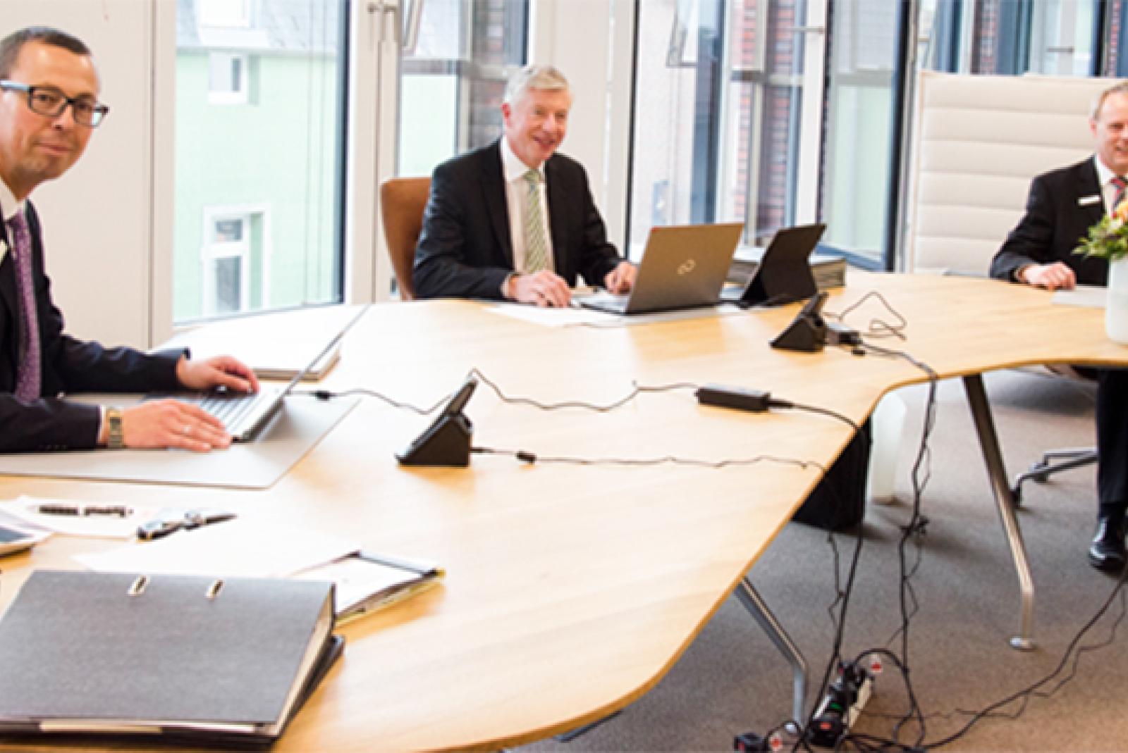 Der Sparkassen-Vorstand um Detlef Oetter, Heinz Feldmann und Carsten Rinne hat nach jahrelangem Schweigen die Zahlen für den Neubau des SparkassenHaus offen gelegt. © Archivfoto: Hanken