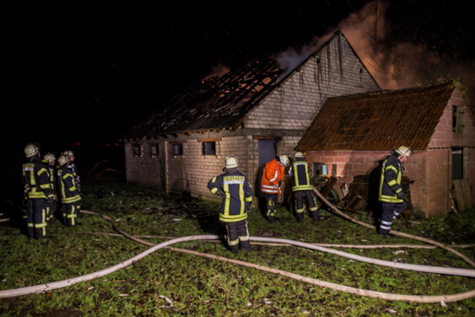 Bei dem Gebäude handelte es sich um ein ehemals landwirtschaftlich genutztes Nebengebäude. In dem Stallgebäude befand sich noch ein Transporter und mehrere Gasflaschen. Beim Eintreffen der Feuerwehr stand der Klinkerbau bereits in Vollbrand. Die Einsatzkräfte gingen sofort zur Brandbekämpfung vor.