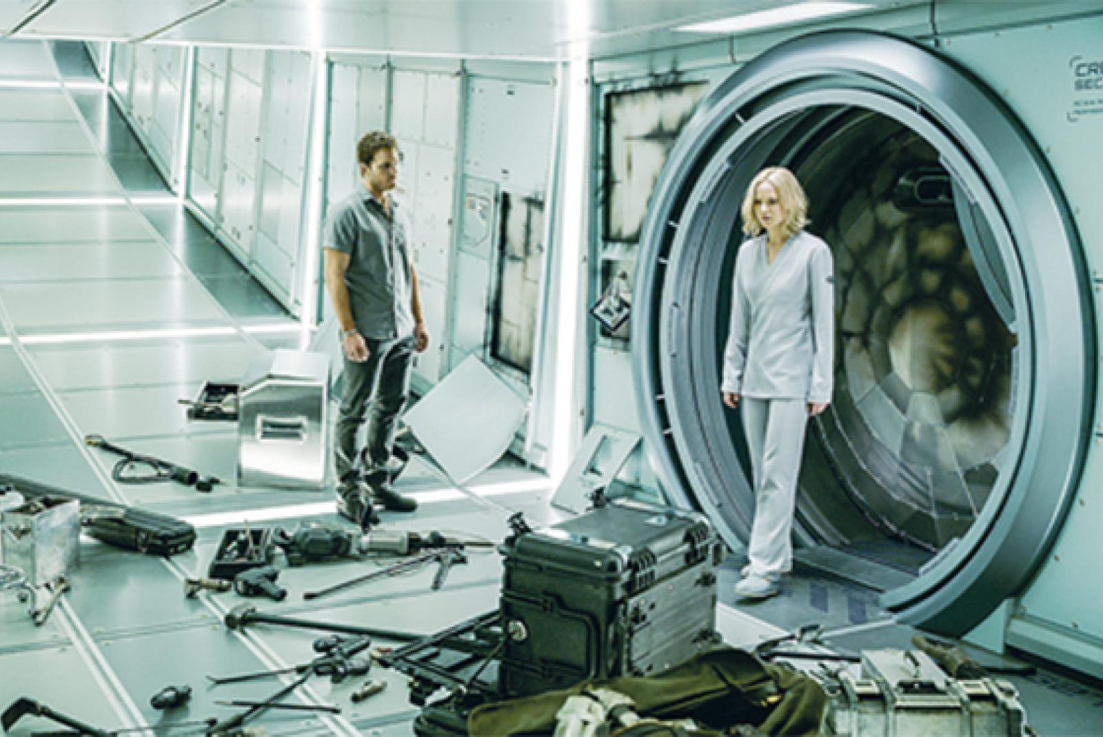 »Warum ausgerechnet wir?« Mechaniker Jim Preson (Chris Pratt) und die Journalistin Aurora Lane (Jennifer Lawrence) fragen sich, aus welchem Grund ausgerechnet sie beide zu früh aufgewacht sind.  © Foto: Sony Pictures