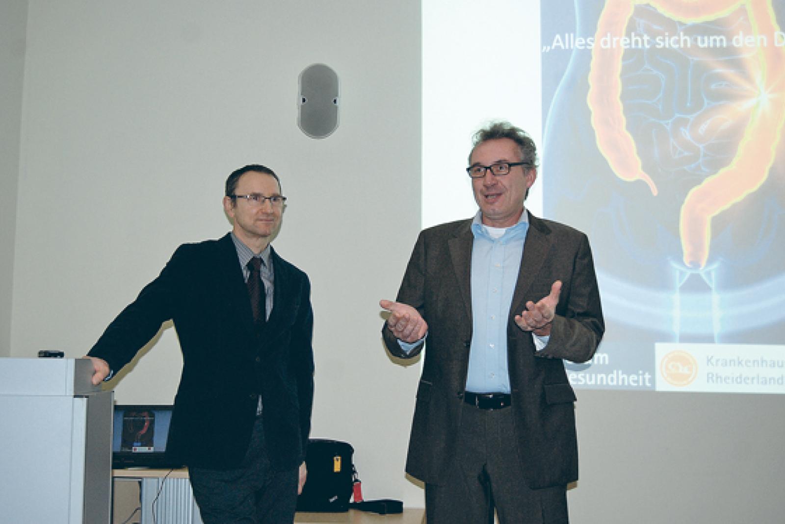 »Alles dreht sich um den Darm«, war am Donnerstag der Titel eines Arztvortrages mit Dr. Rudolf Pietryga und Dr. Markus Dornbach im Krankenhaus Rheiderland in Weener. Rund 50 Zuhörer informierten sich im Konferenzraum des Krankenhauses über dieses Thema.