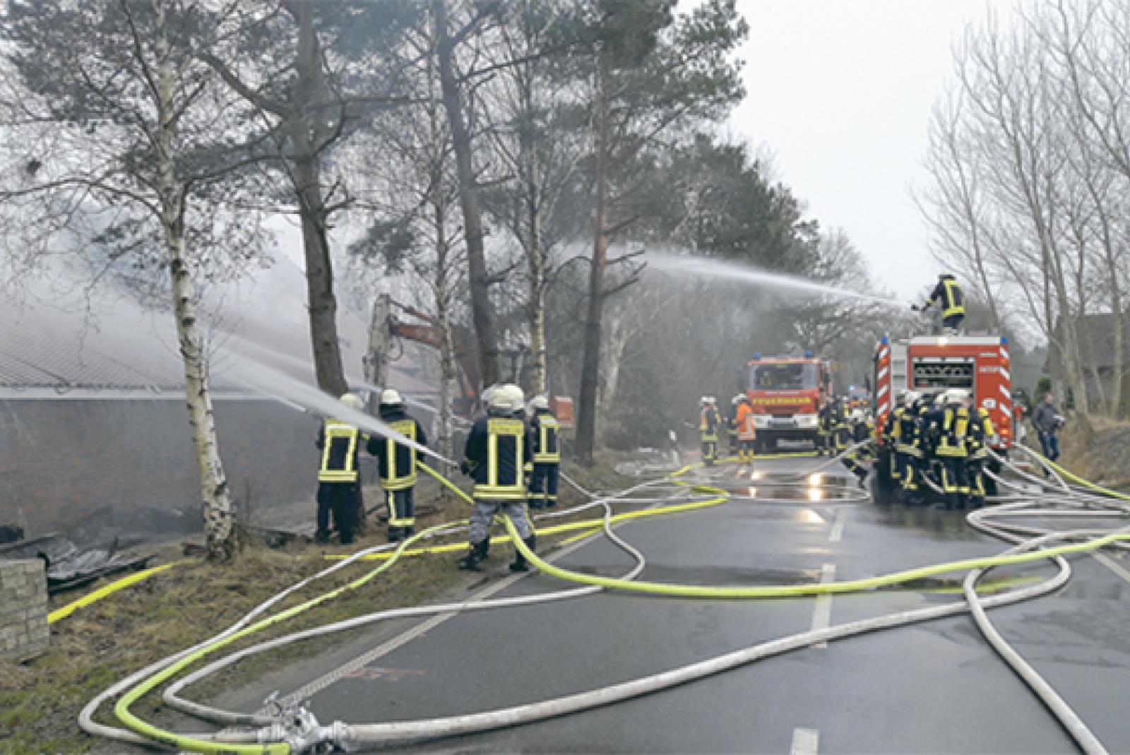 Vier Menschen haben sich heute Vormittag bei einem Brand in der Lagerhalle eines Abbruchunternehmens in Wittmund verletzt, darunter ein Feuerwehrmann.