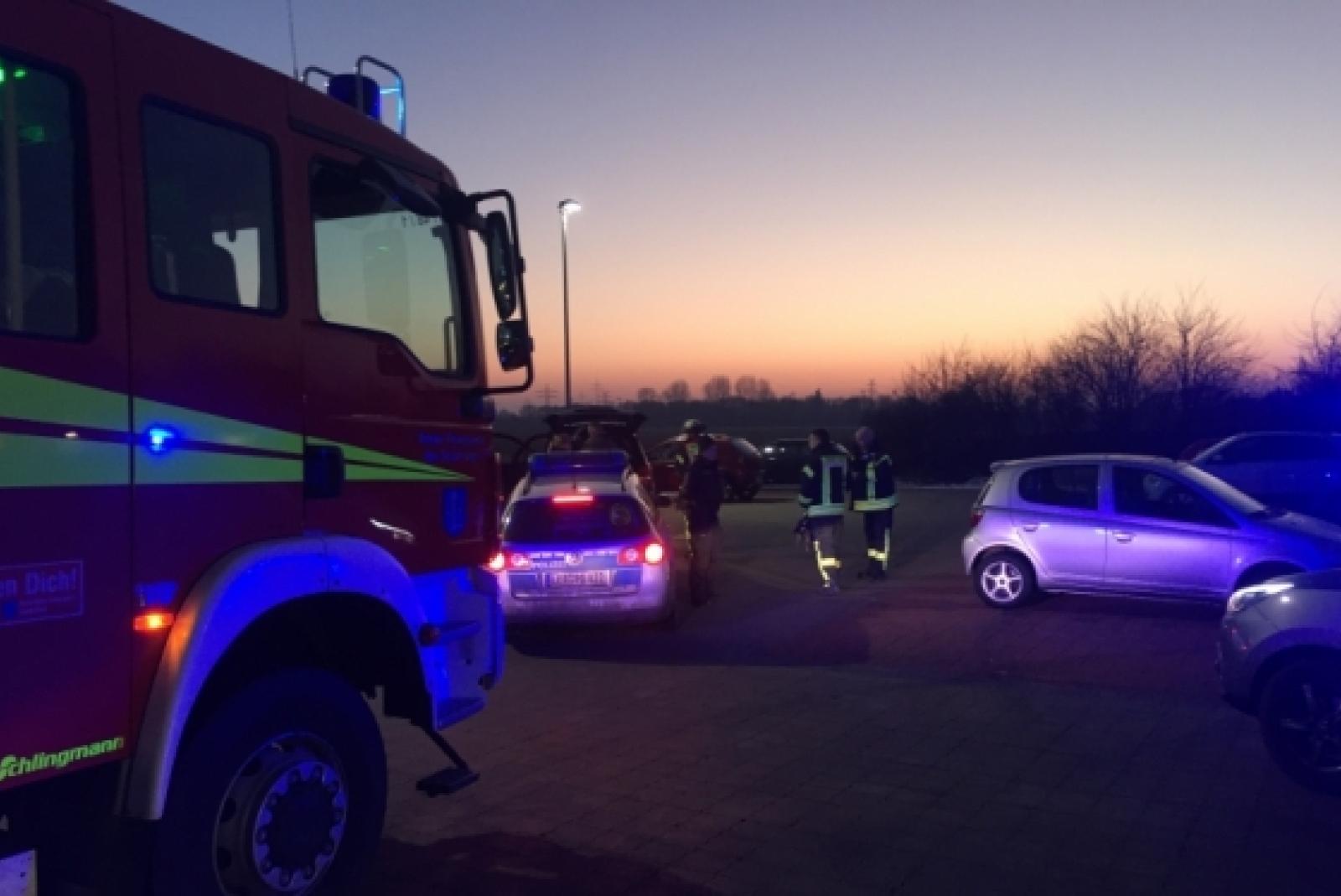 Feuer im Kofferraum an Tankstelle in Leer