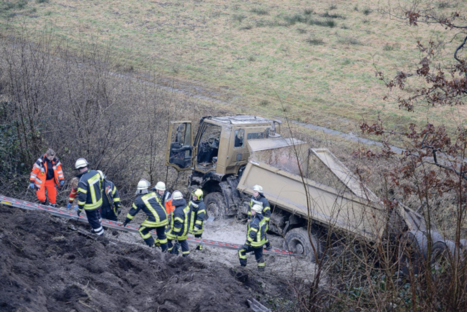 Lastwagen stürzt Böschung herunter