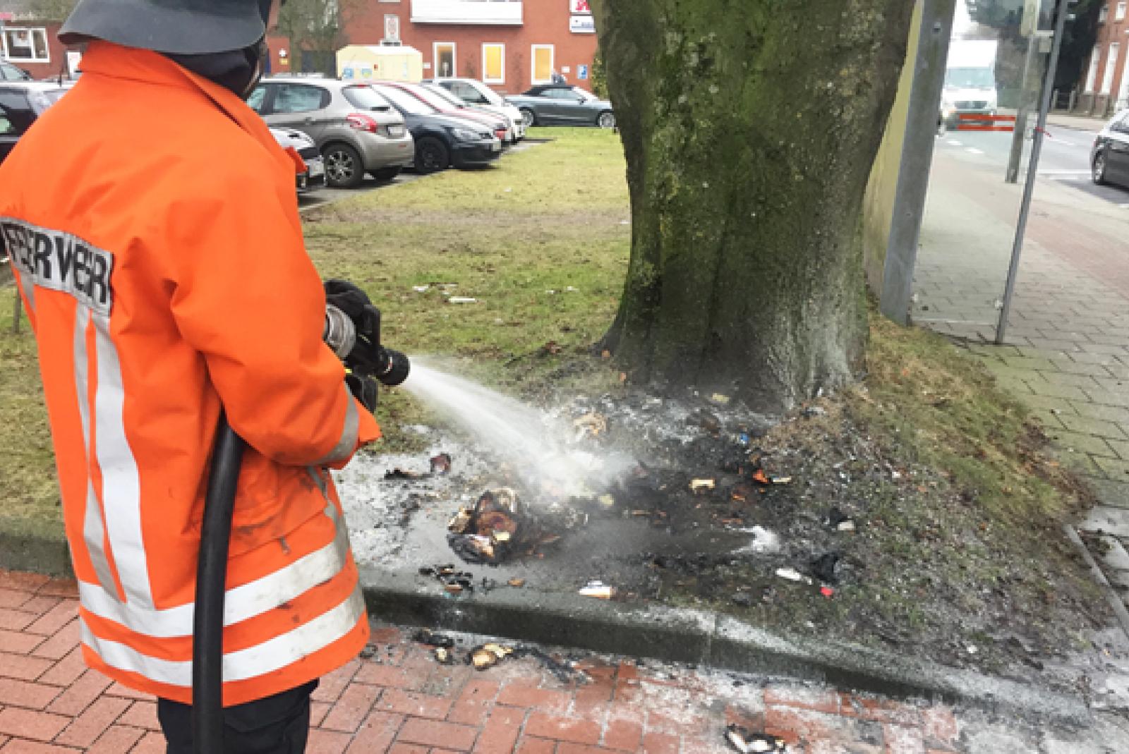 Passanten hatten die brennenden Müllsäcke neben einer Bushaltestelle bemerkt und um 8.24 Uhr die Feuerwehr gerufen. Noch vor dem Eintreffen der ersten Kräfte war die Polizei vor Ort und konnte mit einem Feuerlöscher die meisten Flammen ersticken.