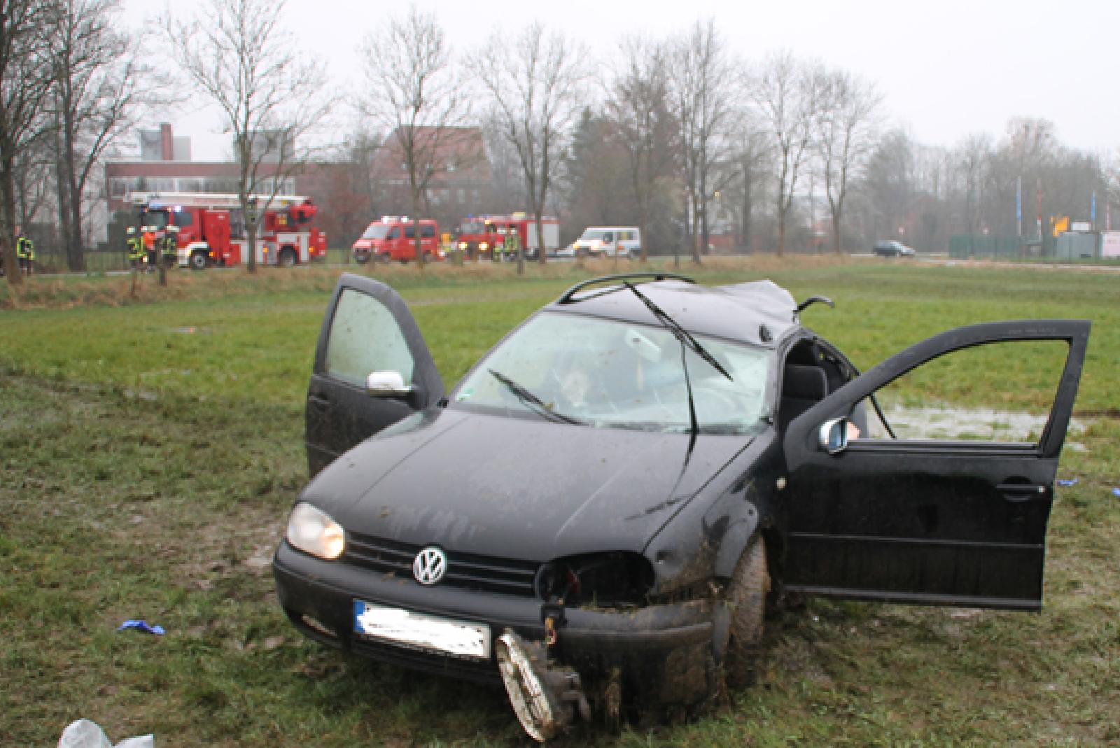 Wie die Kreisfeuerwehr mitteilte, war der Fahrer eines VW Golf Kombi aus Richtung Leer gekommen, als das Auto aus bislang unbekannter Ursache nach rechts von der Fahrbahn schleuderte, gegen einen Baum und rund 150 Meter weiter auf einem Feld liegen blieb.