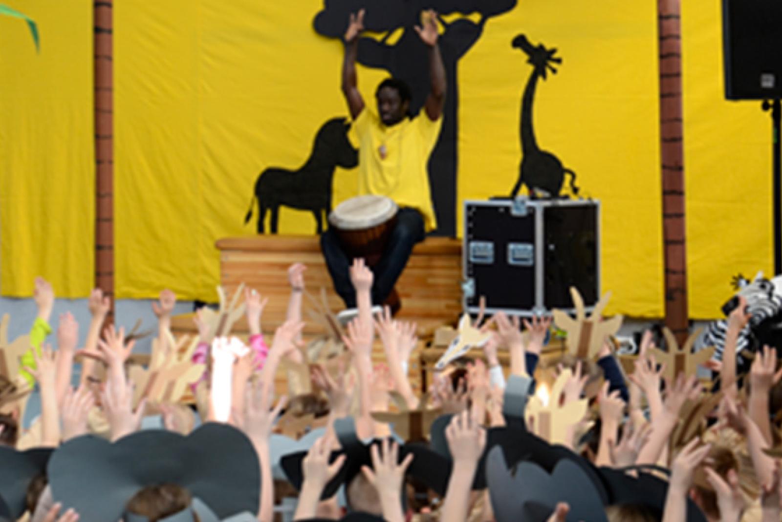 Afrikanische Klänge füllten die Turnhalle der Grundschule Holthusen gestern mit guter Laune. Dazu trommelten alle Schüler der Grundschule mit Fara Diouf. Der Trommelzauber-Bulli stand gestern nicht als einziges Auto vor der Grundschule Holthusen - verriet aber mit ...