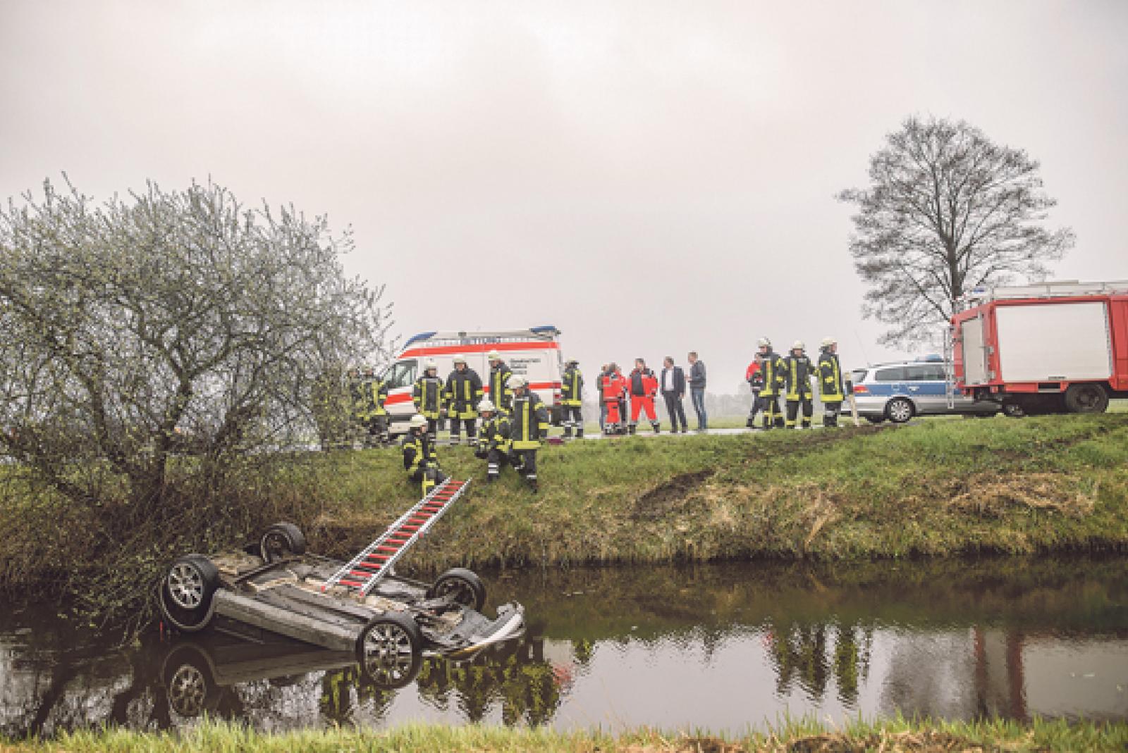 Glück im Unglück hatten heute Abend in Diele eine Mutter und ihre beiden Kinder, die in einem Auto auf dem Dach im Sieltief gelandet waren. Sie erlitten lediglich leichte Verletzungen.