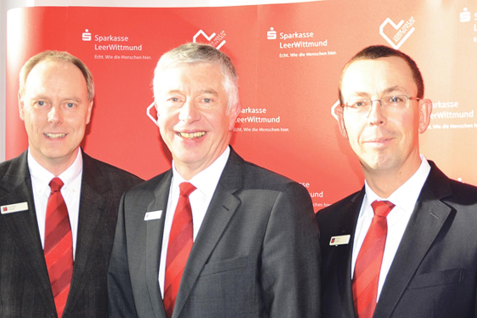 Der Sparkassen-Vorstand um Carsten Rinne, Vorsitzender Heinz Feldmann und Detlef Oetter (von links) informierte jetzt per Pressemitteilung über das Geschäftsjahr 2016. © Archivfoto: Hanken