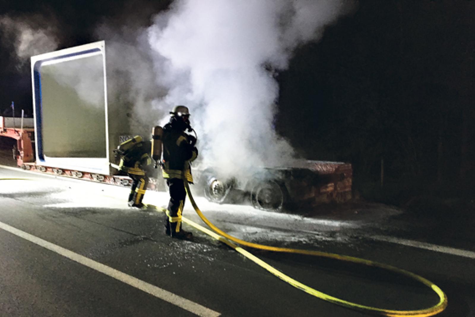 Feuerwehr löscht Anhänger auf A 28 - Zugmaschine wurde nicht beschädigt