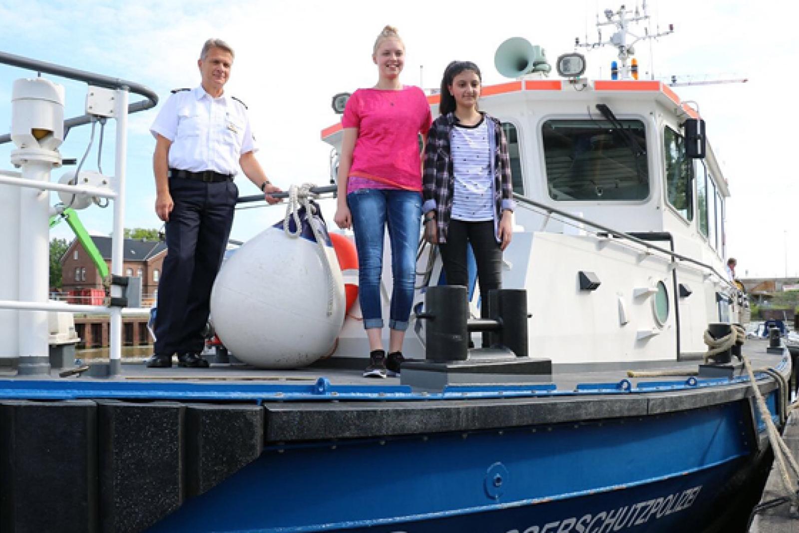 Am Mittwoch bedankte Jörg Fels-Hohensee, Leiter der Wasserschutzpolizeistation Emden, sich im Namen der Wasserschutzpolizeiinspektion bei beiden Mädchen. Als Wertschätzung dieses couragierten und vorbildlichen Handelns lud er sie und ihre Eltern zu einer Fahrt mit dem Küstenboot »W2« im Emder Hafen ein.