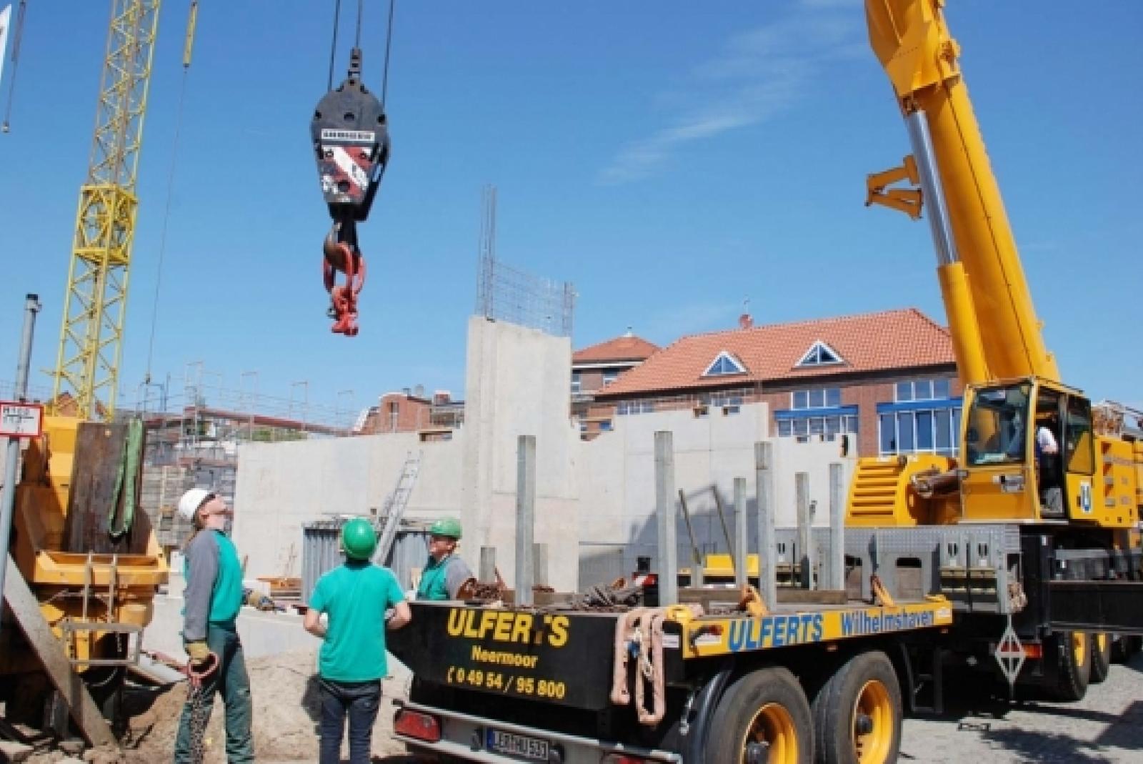 Im rückwärtigen Bereich der OVB-Hauptstelle an der Norderstraße in Leer geht es planmäßig voran. © Foto: Hoegen