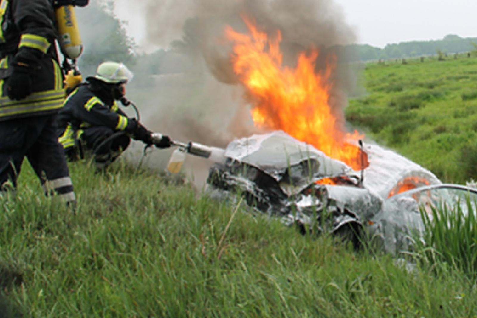 Auto brennt lichterloh in Graben