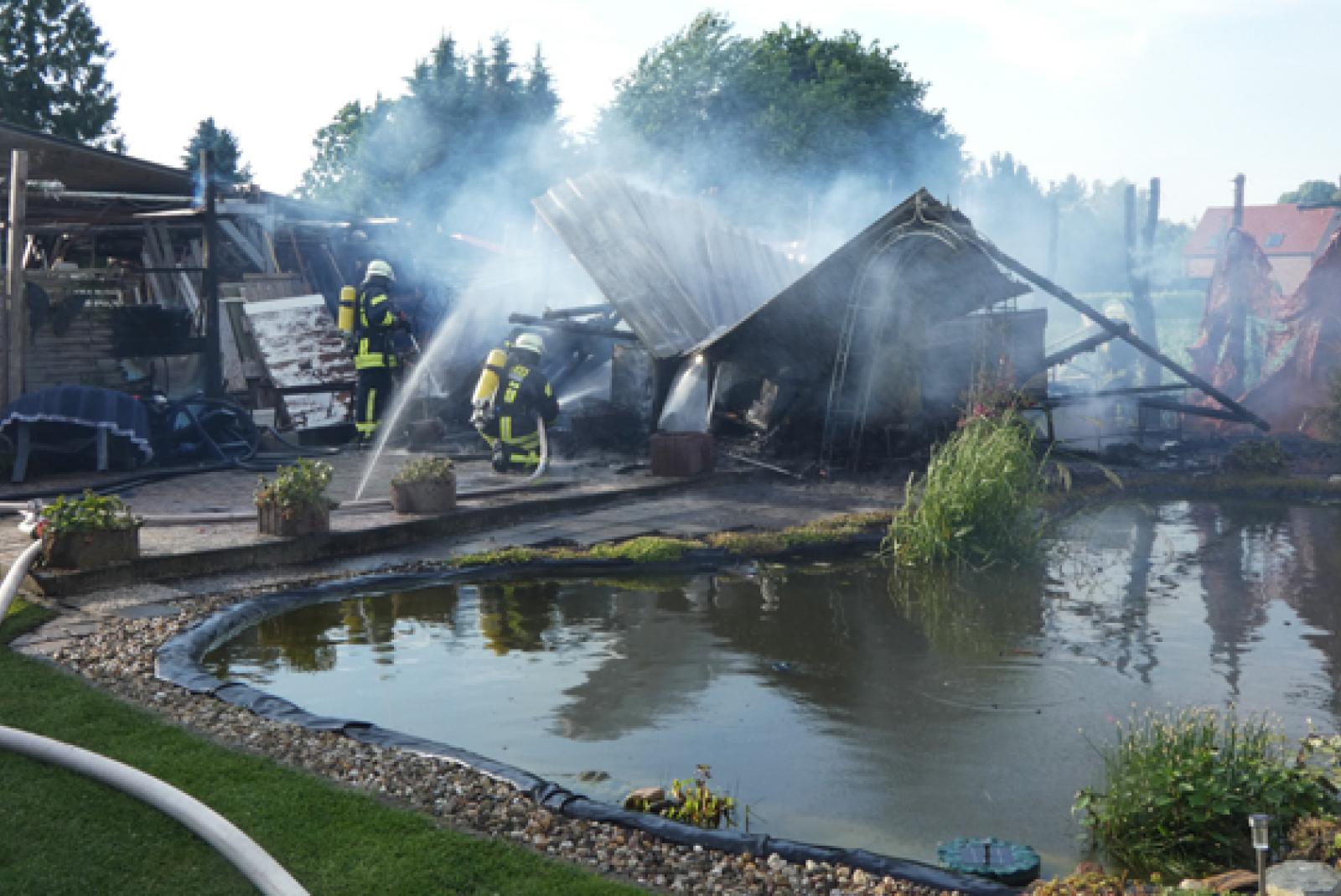 Ein Nachbar hatte das Feuer um 18.56 Uhr entdeckt und die Feuerwehr gerufen, so die Kreisfeuerwehr in einer Mitteilung. Die Feuerwehren aus Völlen und Völlenerfehn sowie der Einsatzleitwagen der Gemeinde Westoverledingen waren binnen weniger Minuten vor Ort. Die Holzhütte, in der unter anderem auch eine Theke untergebracht war, stand zu diesem Zeitpunkt bereits komplett in Flammen. Durch einen sofort eingeleiteten Löschangriff mit mehreren Rohren konnten die Flammen aber schnell unter Kontrolle gebracht werden.