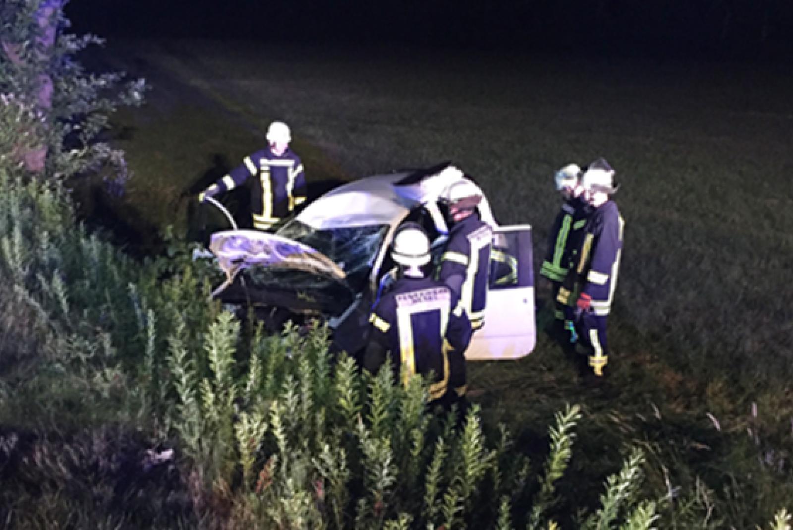 Nach ersten Erkenntnissen kam die Fahrerin eines Renault Twingo, aus Richtung Filsum kommend nach links von der Fahrbahn ab. Der Wagen überschlug sich daraufhin an der Berme und blieb kopfüber an einer Grabenkante liegen.