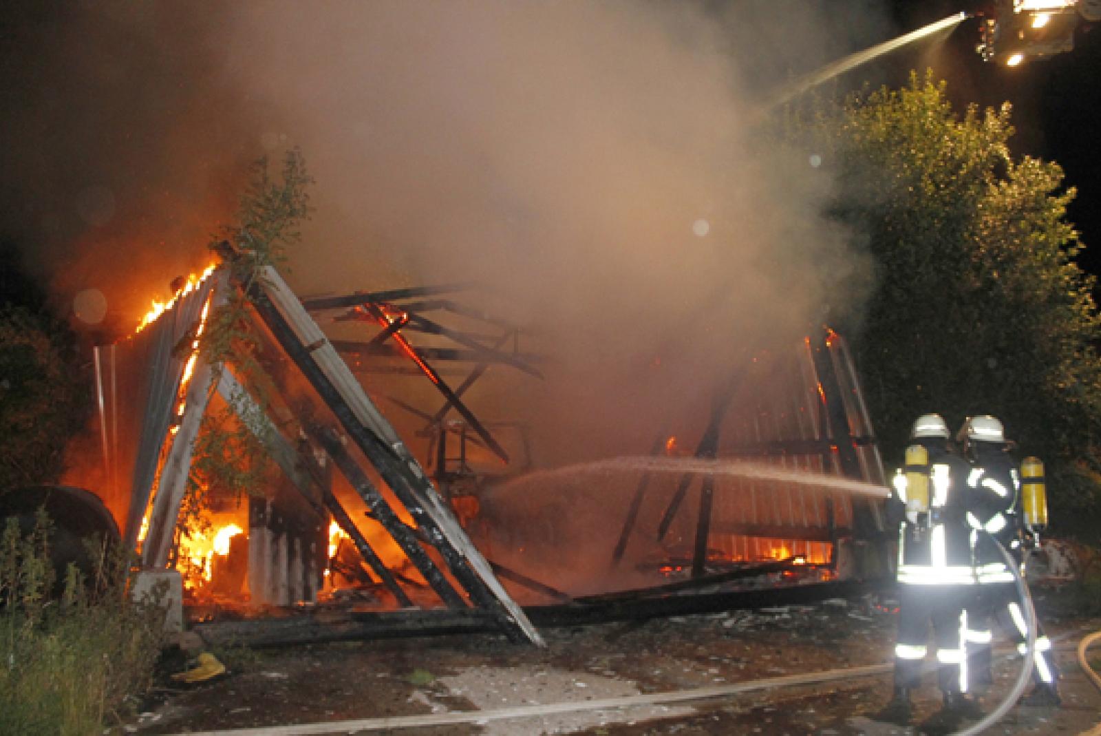 In der 20 Meter langen Halle lagerten rund 50 Rundballen, zudem standen ein Traktor und ein Anhänger in der Halle.