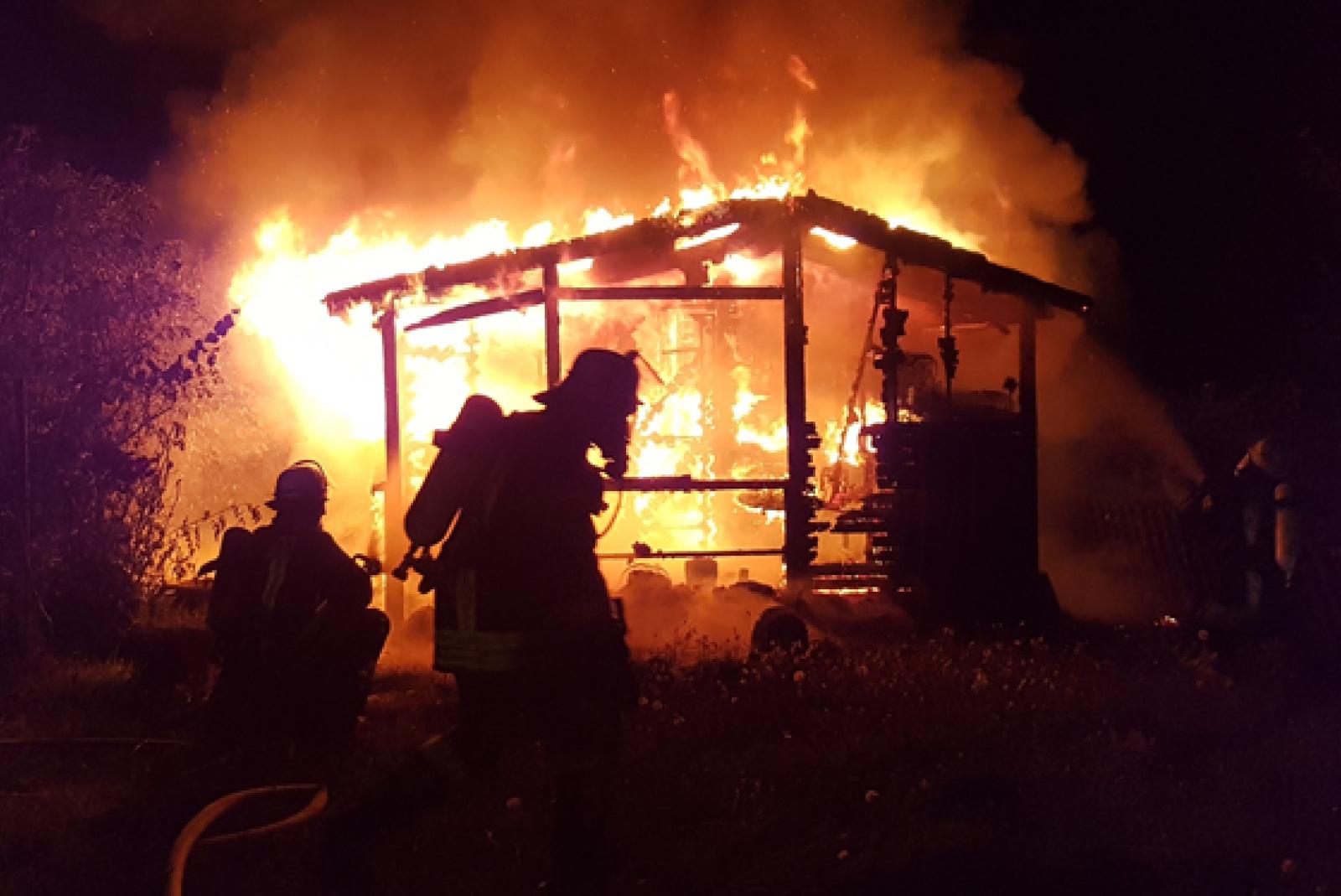 Eine Blockhütte im Beningaweg in Weener ist in der Nacht auf Mittwoch durch ein Feuer zerstört worden. Die Einsatzkräfte hatten das Feuer schnell unter Kontrolle. Verletzt wurde niemand.
