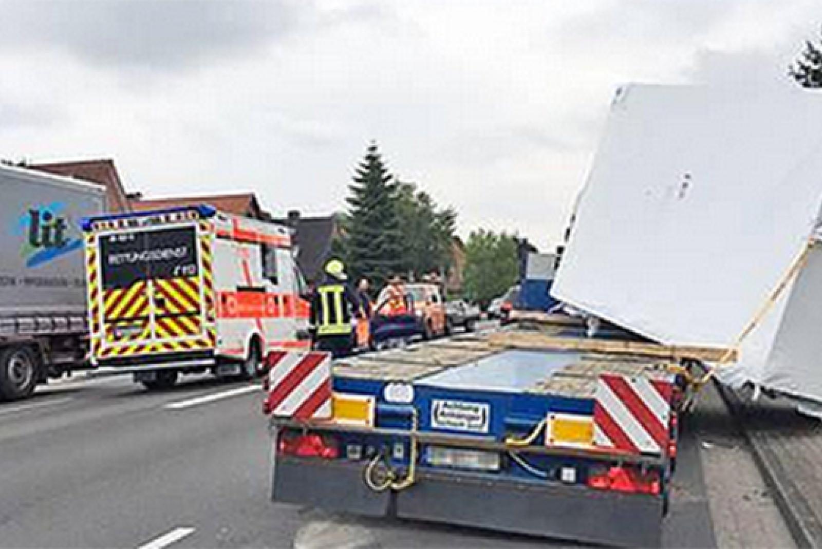 Ein Tieflader hat heute Nachmittag bei einem Verkehrsunfall auf der Auricher Straße in Emden seine neun Tonnen schwere Ladung verloren.