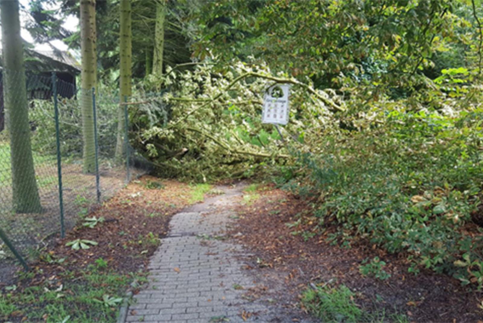 Dieser Baum war aufgrund des Sturms auf den Wanderweg beim Anglerheim an der Hilkenborger Straße in Weener gestürzt.