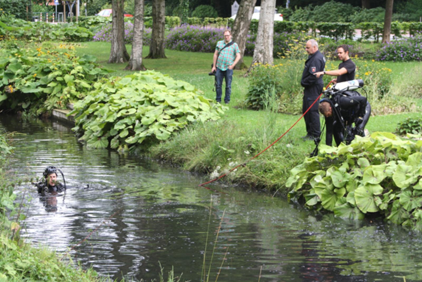 Ohne Ergebnis blieb eine Suche von Polizeitauchern in einem Graben am Hohen Wall in Aurich. Hier waren Beweismittel im Zusammenhang mit dem gewaltsamen Tod einer 20-jährigen Mutter, die im Juni tot in ihrer Wohnung aufgefunden wurde, vermutet worden. Tatverdä...