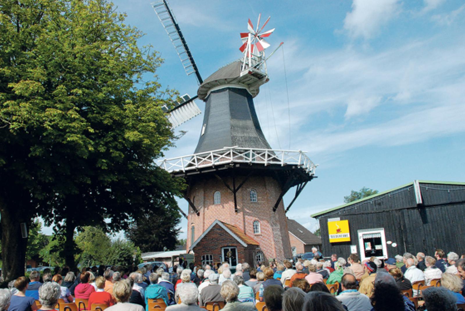 Wie von der Ev.-reformierten Kirchengemeinde Stapelmoor und der Müllerfamilie Wichers geplant, fand am Sonntag der jährliche Gottesdienst im Sonnenschein draußen auf dem Mühlenvorplatz in Stapelmoor statt.