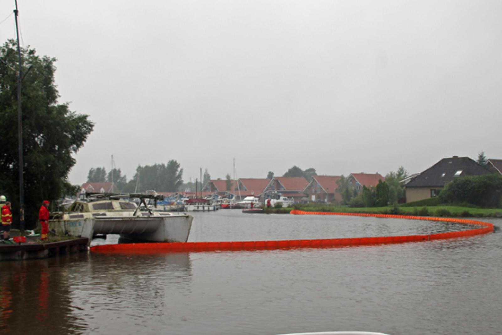Mit Hilfe eines Bootes brachten die Einsatzkräfte zunächst über 100 Meter Ölsperren aus, um die Ausbreitung der Betriebsstoffe aufzuhalten. Neben der Feuerwehr Weener, die mit dem Löschgruppenfahrzeug LF 16 und dem Einsatzleitwagen ELW sowie mehreren Kräften vor Ort war, waren auch die Wasserschutzpolizei, die Untere Wasserbehörde und die Wasserrettung des Landkreises Leer mit einem Boot im Einsatz.