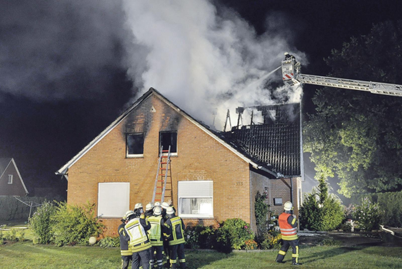 Wie die Kreisfeuerwehr mitteilte, brach das Feuer in dem Wohnhaus an der Papenburger Straße gegen 1 Uhr im Obergeschoss aus. Binnen weniger Minuten gingen mehrere Anrufe bei der Regionalleitstelle ein. Das Feuer dehnte sich schnell aus, sodass kurz nach dem ersten Alarm der Feuerwehr bereits die Alarmstufe auf »Dachstuhlbrand« erhöht wurde. Einsatzkräfte der Feuerwehren aus Völlenerkönigsfehn, Völlenerfehn, Völlen, Flachsmeer und Ihrhove sowie der Einsatzleitwagen der Gemeinde Westoverledingen rückten zum Ort des Geschehens aus. Beim Eintreffen der ersten Brandbekämpfer schlugen die Flammen bereits aus dem Dach des Hauses.