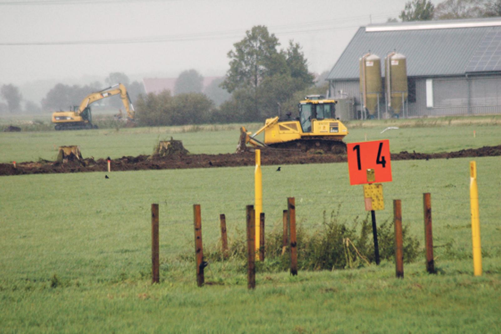 An der Kreisstraße 27 in Vellage haben jetzt die Vorbereitungen für den geplanten Sandabbau begonnen. Seit gestern trägt eine Raupe des Papenburger Bauunternehmens Bunte den Mutterboden ab, um eine Startgrube für den Saugbagger anzulegen.