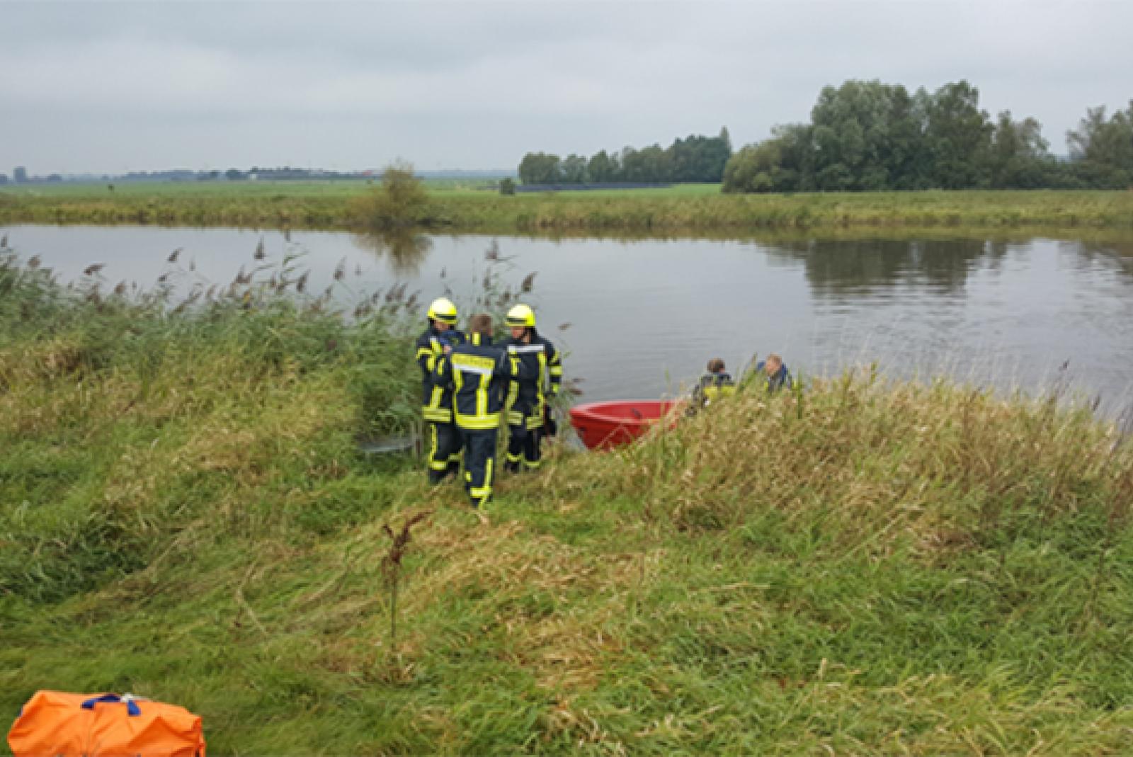 Am Montagvormittag mussten die Feuerwehren aus Amdorf und Detern-Stickhausen-Velde zu einer Tierrettung nach Neuburg (Detern) ausrücken. Urlauber hatten dort in der Jümme, in Höhe des Altarms Terwisch, ein hilfloses Schaf entdeckt.