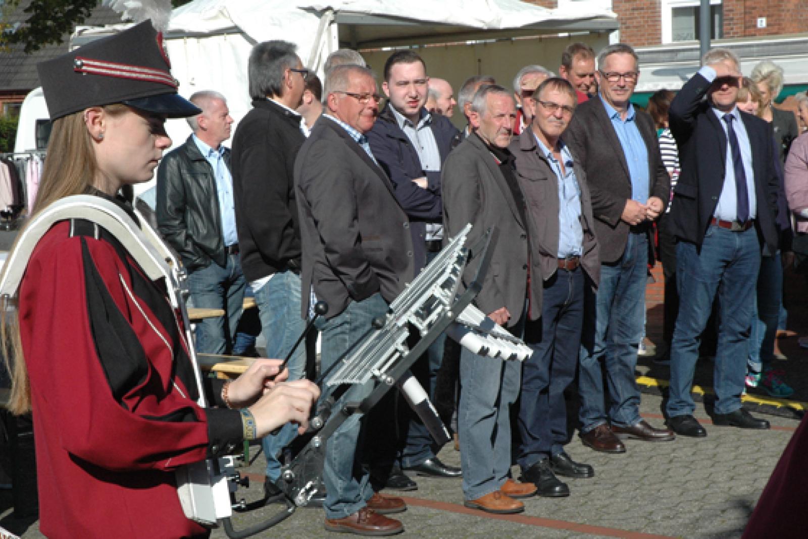 Anlässlich des »Plattdüütskmaant September« hat Bürgermeister Ludwig Sonnenberg heute mit einer Rede auf Plattdeutsch den 509. Michaelismarkt in Weener eröffnet. Die »Malletband Stadt Weener« sorgte mit rhythmischen Klängen für einen schwungvollen Auftakt.