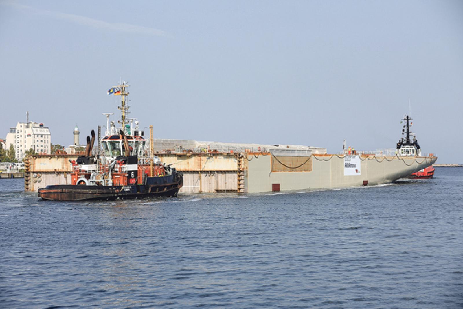 Das erste von zwei Schwimmteilen des neuen Kreuzfahrtschiffes »Aida Nova« hat am Montag von der Neptun-Werft in Rostock aus seine Reise in Richtung Papenburg aufgenommen.