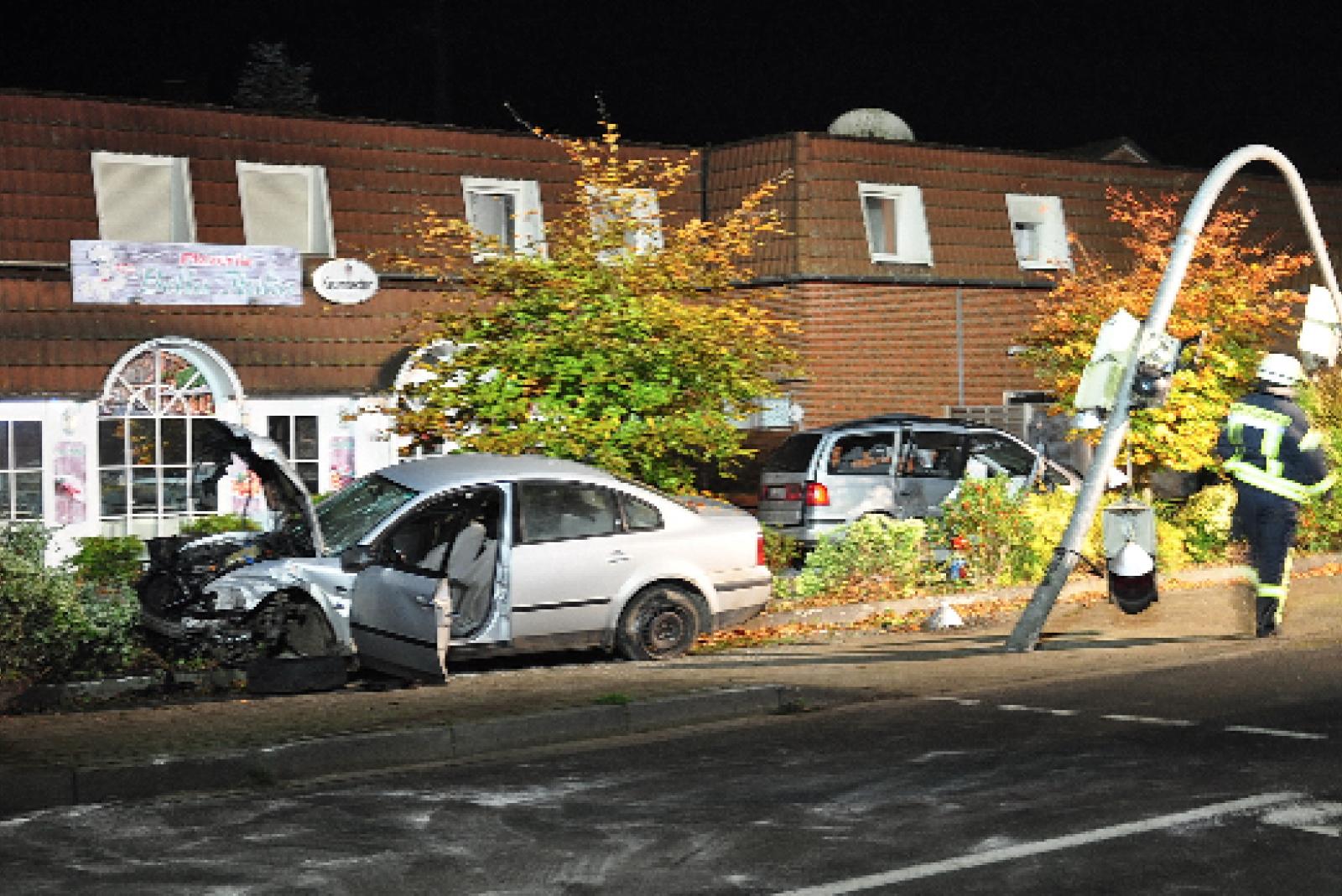 Nach ersten Ermittlungen befuhr der Fahrer eines VW Passat gegen 23 Uhr die Dr.-Warsing-Straße in Richtung Kreuzung Alte Landstraße/Hauptwieke. Dort soll er ein Stopp-Schild missachtet haben und prallte danach mit einem von Neermoor nach Timmel fahrenden VW Sharan zusammen. Durch den Zusammenstoß wurden sowohl die 21-jährige Fahrerin des Sharan als auch der 29-jährige Fahrer des Passat und sein 27-jähriger Mitfahrer verletzt. Alle drei wurden ins Krankenhaus gebracht. Dem Fahrer wurde eine Blutprobe entnommen und der Führerschein sichergestellt.