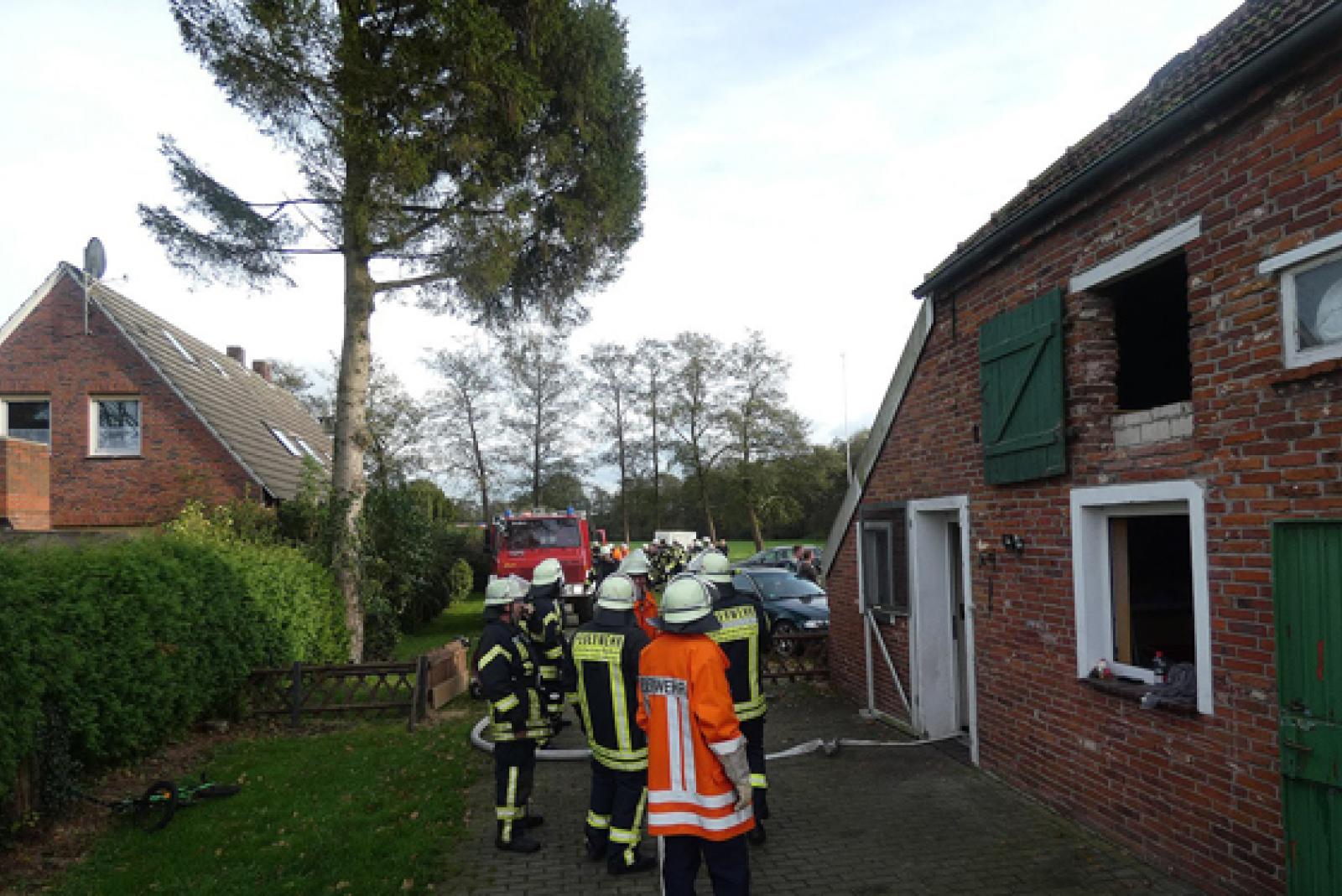Feuerwehr im Einsatz bei Brand in Völlenerfehn
