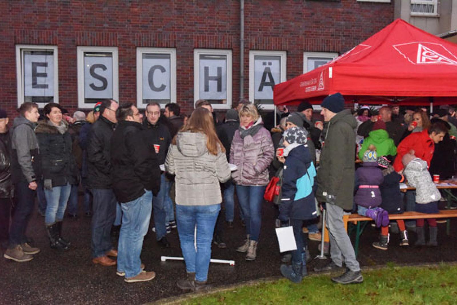 Gemeinsam mit ihren Familien hat die Belegschaft von ThyssenKrupp Marine Systems (TKMS) am Montag für den Erhalt ihres Standorts protestiert. Kern der Aktion vor der Hauptverwaltung der alten Nordseewerke war das Schmücken eines Weihnachtsbaums.