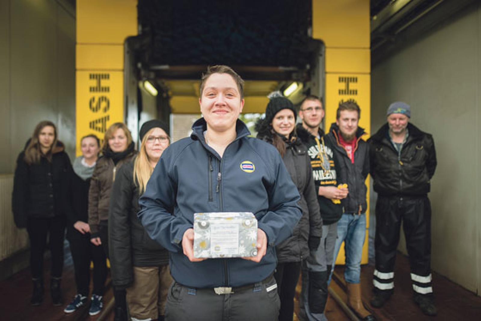 Eine Spende über 1000 Euro haben Freitag die Initiatoren einer Benefiz-Autowaschaktion auf dem Gelände der Score-Tankstelle in Möhlenwarf an das Kinderhospiz »Joshua« in Wilhelmshaven übergeben.