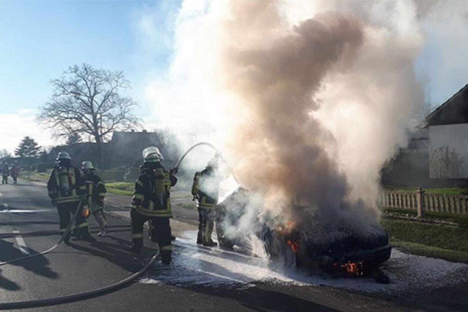 Der Fahrer, der zusammen mit einem Kind im Auto saß, bemerkte während der Fahrt einen Brandgeruch, fuhr dann aber noch etwas weiter. Der Wagen fing dann aber kurz vor dem Ziel der Fahrt zu brennen an. Beide Fahrzeuginsassen konnten rechtzeitig und unverletzt aussteigen und die Feuerwehr rufen.