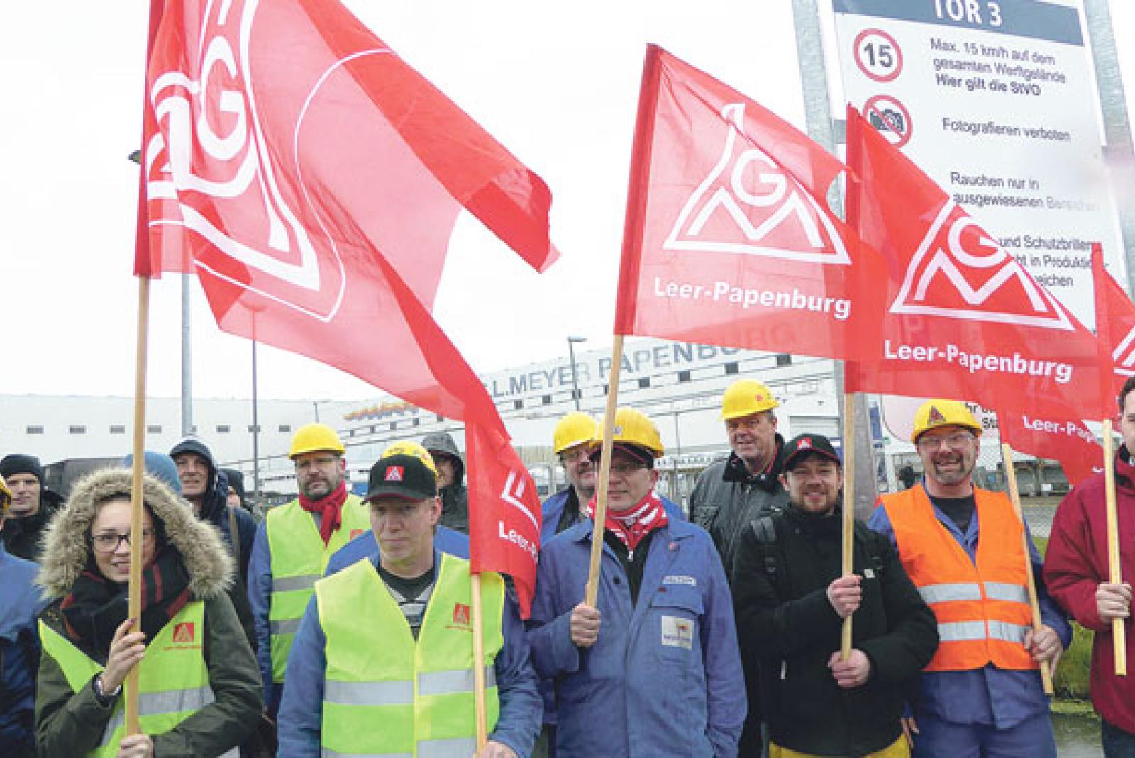 Die IG Metall erhöht den Druck und hat die Warnstreiks in der Metall- und Elektroindustrie ausgeweitet. Am morgigen Donnerstag sind auch Mitarbeiter der Meyer Werft Papenburg aufgefordert, die Arbeit niederzulegen und ihren Forderungen Nachdruck zu verleihen. Auch bei den Ledawerken in Leer soll gestreikt werden.