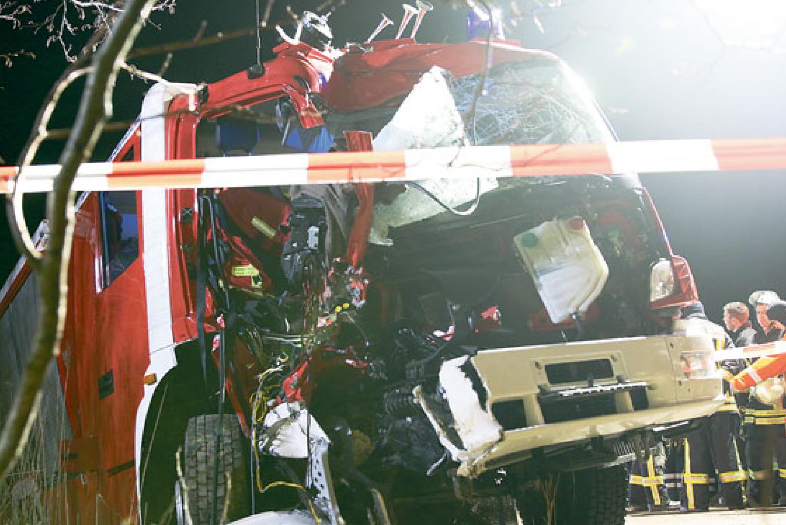 Der Unfall ereignete sich am Donnerstag um 16.05 Uhr im Ortsteil Westerbur. Das Tanklöschfahrzeug war nach Angaben der Polizei auf der Pumpsieler Straße nach rechts von der Fahrbahn abgekommen, auf den weichen Untergrund der Berme geraten und schließlich gegen einen Baum geprallt.