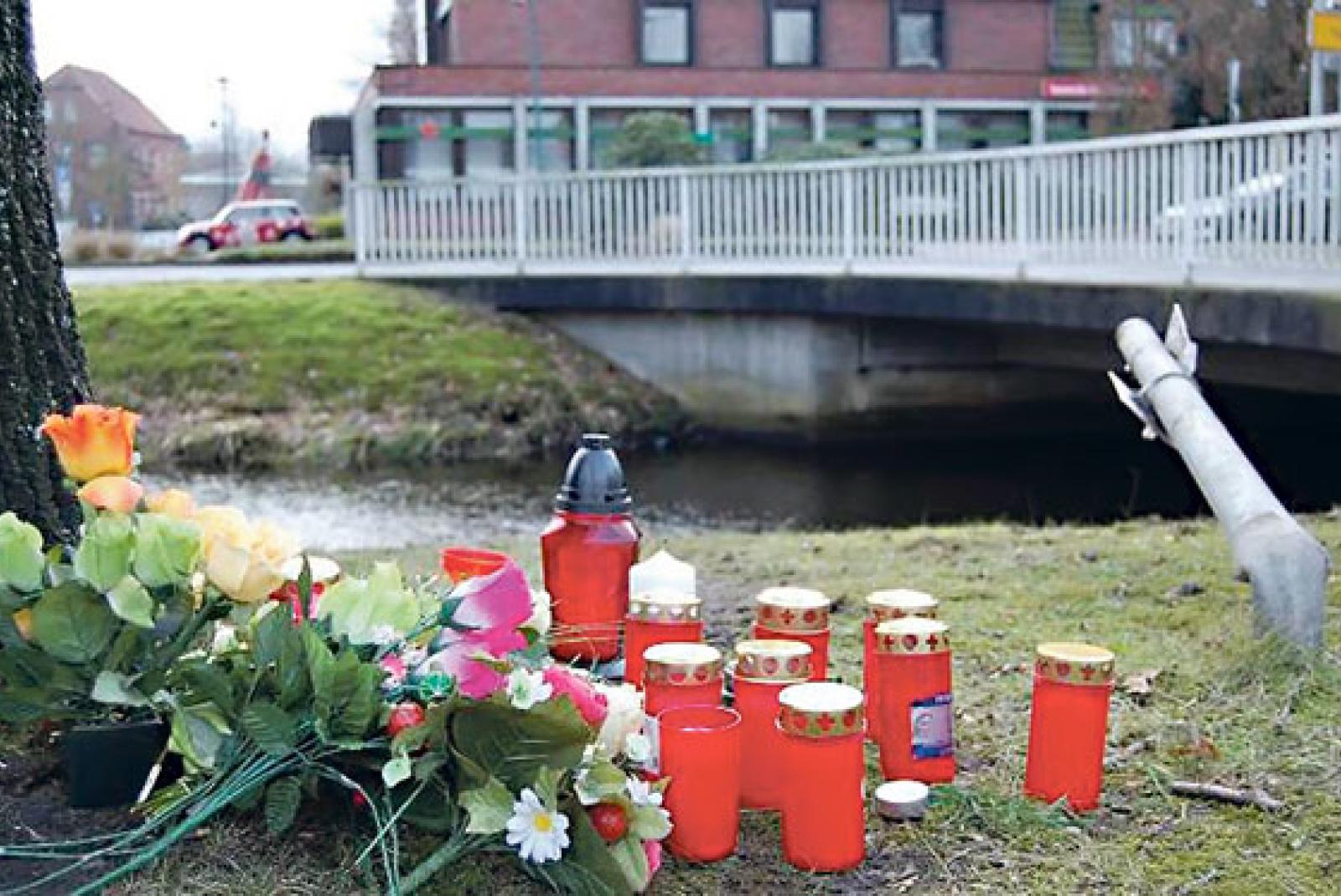 Kerzen und Blumen an der Unfallstelle