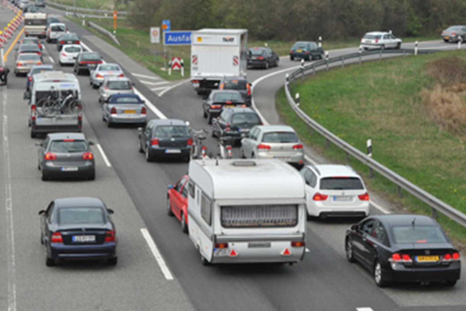 Der Verkehr wird abschnittsweise halbseitig über den Überhol- beziehungsweise Hauptfahrstreifen an der Baustelle vorbeigeführt, ...